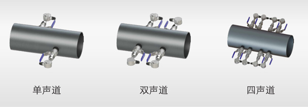 多聲道外夾式超聲波流量計由主機和外夾式傳感器組成,主機和傳感器可任意組合,可實現單聲道、雙聲道、四聲道測量,滿足不同精度、不同使用場景需要。